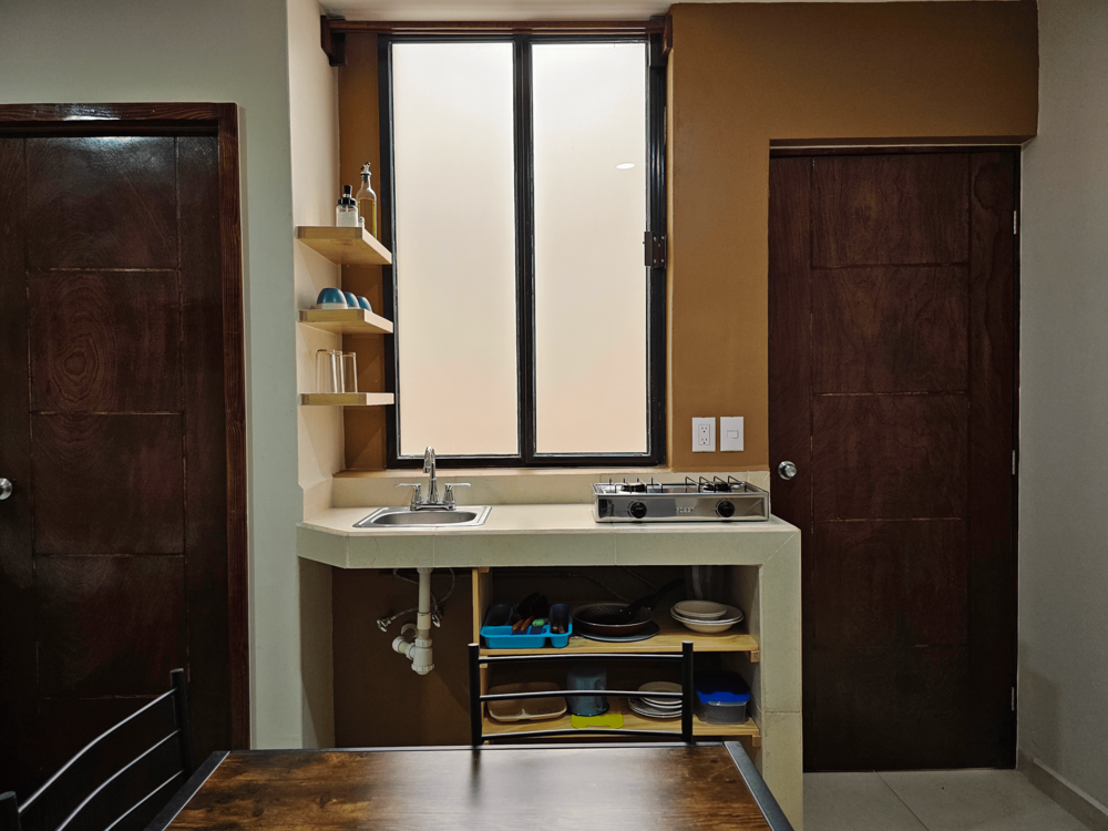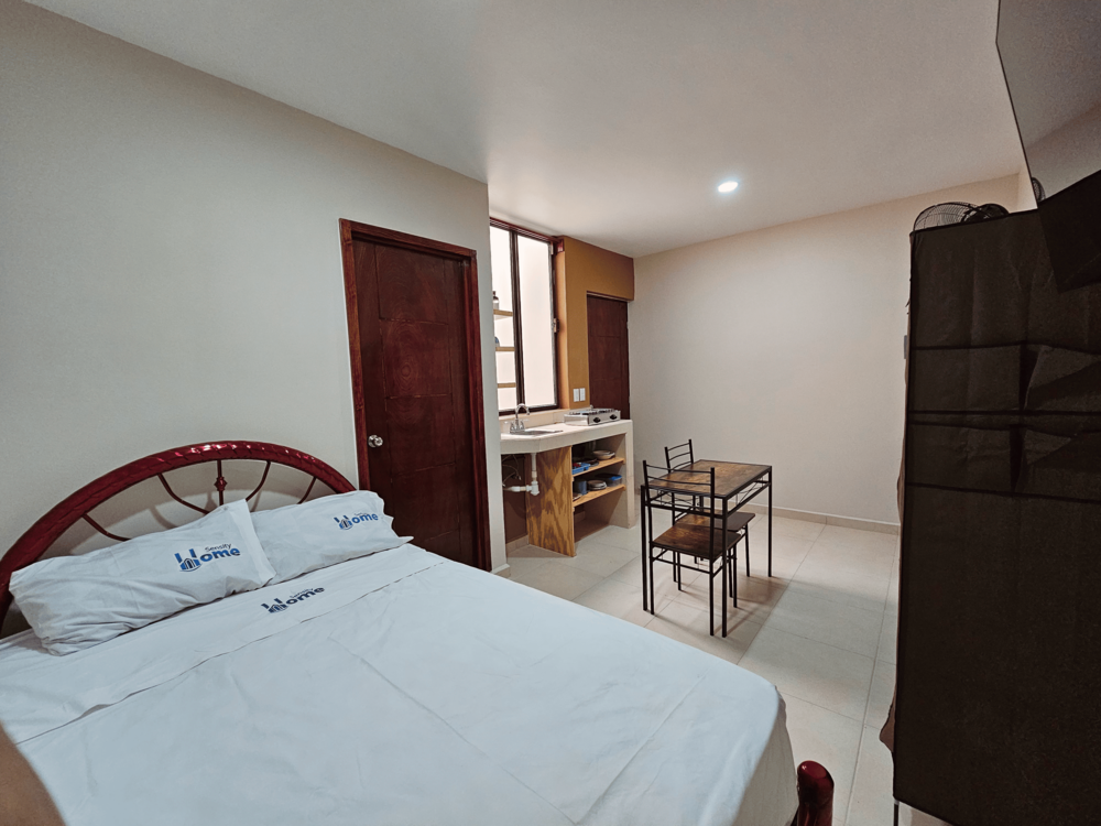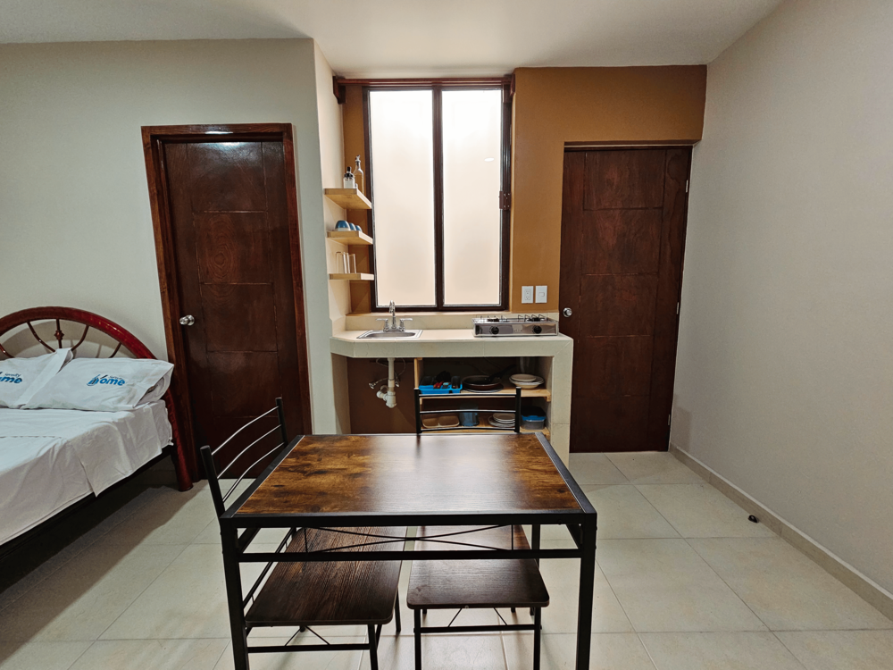 Disfruta de una recámara totalmente equipada, ideal para parejas o viajeros de negocios. Con cama matrimonial, baño privado, cocineta completa, comedor para dos, y un escritorio perfecto para trabajar, nuestro espacio está diseñado para tu comodidad.