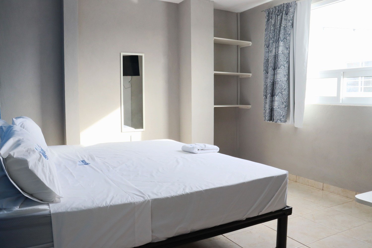 Nuestro alojamiento es único porque combina a la perfección confort y detalles especiales que te harán sentir mejor que en casa. La habitación, con una espaciosa cama queen, está diseñada para ofrecerte un descanso excepcional. Su cálida decoración te envuelve en un ambiente acogedor, iluminado naturalmente para crear un espacio aún más agradable. Además, cuenta con ventilador de techo y televisor, para que disfrutes de una estancia cómoda y relajante.